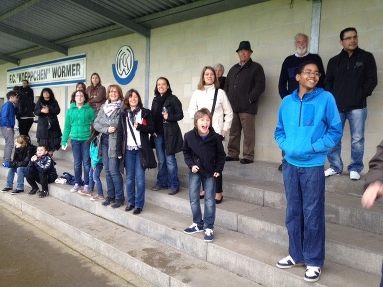 Nom Téi huet et gläich nach eemol gerabbelt an den 0:4 ass gefall. Ween gemengt hat déi Wormer géingen elo ënner goen, deen ass eppes besseres beléiert ginn. Den Ivo Silva leeft eng Konter, dribbelt behäerzt op den Goal an ... Goal. Den Jubel war grouss. Eng Minutt dono, huet den Mattis Noel een Corner an den Strofraum bruecht an den Ivo Silva schéisst den 2:4. D´Supporteren waren aus dem Haischen an och Si hunn elo hier Equipe lautstark ugefeiert. Kuerz drop schéisst den Eric Weisgerber den 3:4 an den Ivo Silva den 4:4. Et war e Futtballspektakel wei een et nach ni gesinn hat vun eisen Bouwen. Si sinn geschlossen an als Equipe opgelaf an hunn voller Selbstvertrauen all déi Saachen ëmgesat, déi si vun hirem Trainer Guy Noel geleiert ginn sin. An der 20. Minutt ass et Beetebuerg zwar nach gelongen den 4:5 ze schéissen, mä déi Wormer hunn weiderhin e puer spektakulär Goalchancen erausgespillt. Och wann si dësen Match net gewonnen hunn, hunn d´Wormer Poussins dach gewisen dass si richteg schéinen Futtball kennen spillen, an och bei engem 0:4 Réckstand net ophalen un sech ze gleewen an dass si kämpfen bis zum Schluss. D´Supporteren bedanken sech bei deenen 2 Equipen vir deen extravaganten Match.