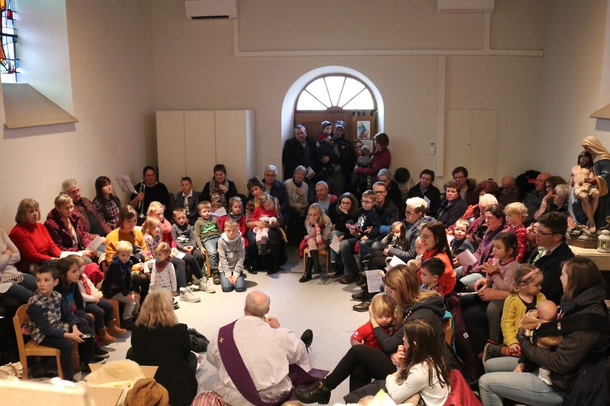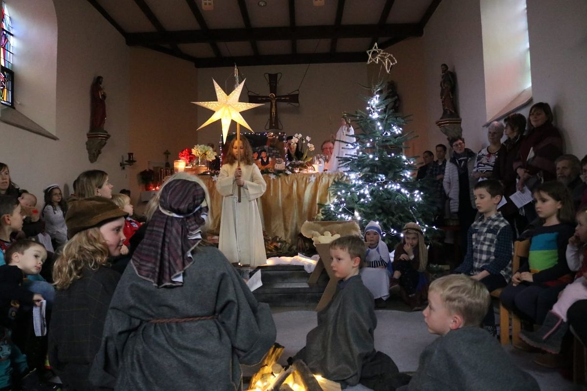 In der Kapelle von Troine-Route versammelten sich kürzlich Eltern und Grosseltern mit ihren kleinen Kindern, um sich auf Weihnachten einzustimmen. Mit dem Lied "Stern über Betlehem" wurde die Feier eröffnet. Das Hirtenspiel der Kinder zeigt den Stern, der die Hirten zur Krippe beim Kind führt. Nach der Kindersegnung durch Diakon Michael Müller schmücken die Kinder den Weihnachtsbaum neben der Krippe. Mit einem gemütlichen Zusammensein mit Glühwein und Weihnachtsplätzchen endete die Kindersegnung, die im Rahmen des "Liäwegen Adventskalenders" organisiert wurde und deren Erlös für den Télévie gespendet wird.