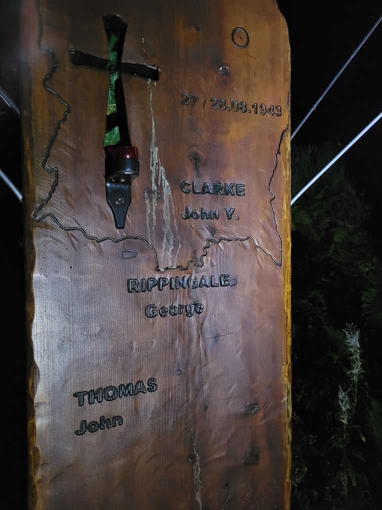 79 years ago, Halifax JD298 "Jafbo" (Just About Feeling Browned Off), NP-N, LA-291234, started in Lissett 27.08.1943 at 21.00h for a raid to Nürnberg. The bomber was shot down by the german nightfighter Helmut Bergmann in the night from 27.08 to 28.08.1943, crashed near Altrier in the forest of Marscherwald at 0.59h
