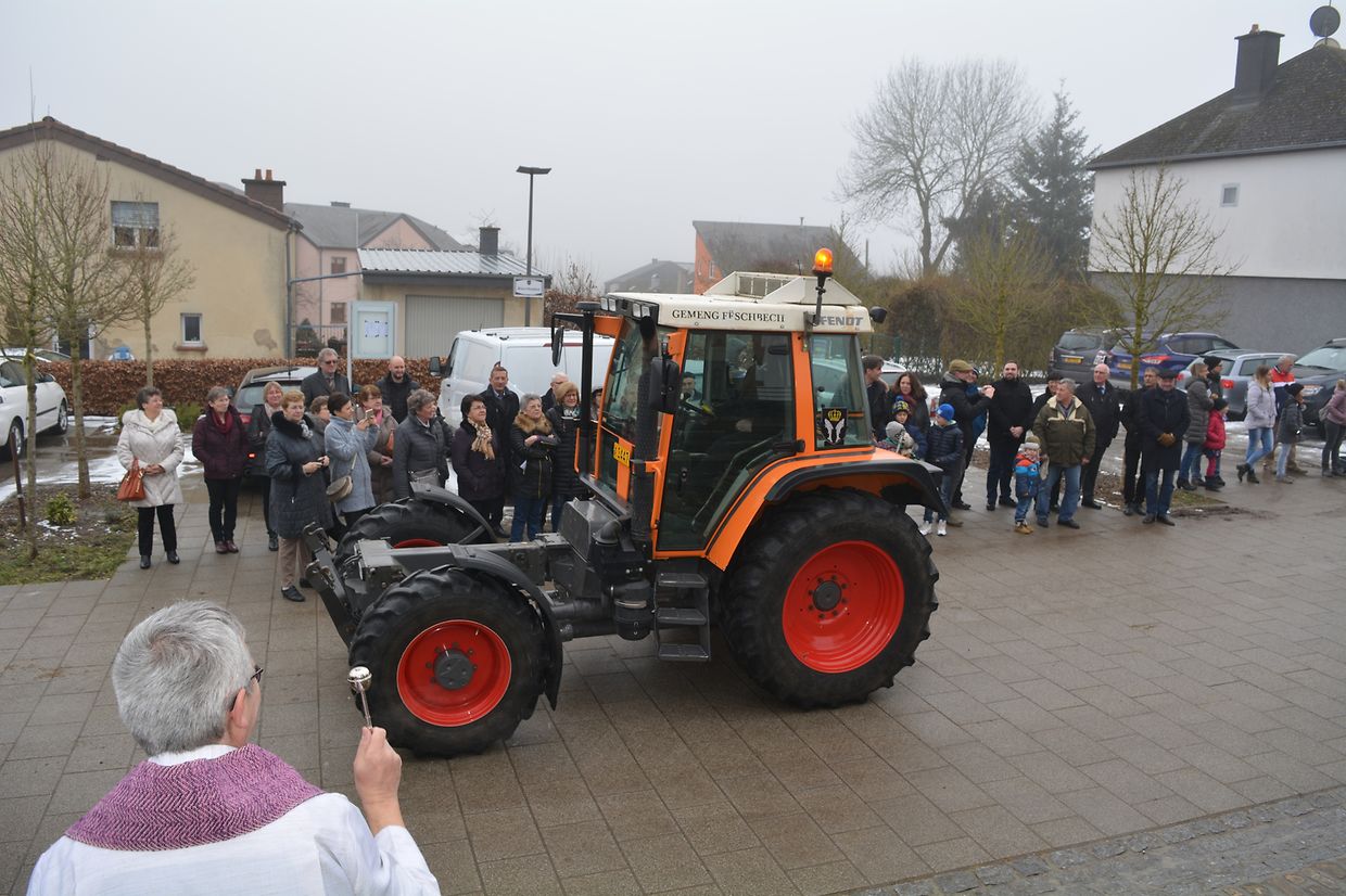 Schonn ëmmer gouf zu Fëschbech den Hellegen Albinus, de Schutzpatréiner vun de Houfdéieren, veréiert a gefeiert. Dës Traditioun war e bësschen a Vergiessenheet geroden a gouf an de leschte Joren nees nei belieft a moderniséiert. Nieft dem Bauer sengem Véi gëtt haut och säin Aarbechtsgeschir geseent. Och dëst Joer waren nieft de villen Trakteren, Pompjeeën nees derbäi an och 2 Päerd. Och de frësch renovéierten Gemengentraktor an déi nei Camionnette si matgefuer. No der Mass zu Angelsbierg, déi de Mierscher Dechen Felix Steichen gehalen huet ass de Cortège geseent ginn a mir sinn all an d'Angsberstuff op den Apero gefuer. Mir freeën eis schonns all op d'Editioun 2019!