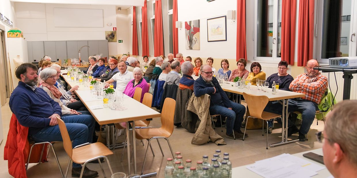 Malou Aulner ging in ihrem Bericht auf die verschiedenen Aktivitäten des vergangenen Jahres ein und stellte die Projekte des laufenden Jahres vor. Nach einem Baumschnittkurs und einem Blumenstechkurs wird demnächst ein Tagesausflug im Oldtimerbus anstehen. Weiterhin werden Näh-und Strickkurs angeboten und, in Zusammenarbeit mit der Gemeinde, auch der Wettbewerb' Villages Fleuris' während der Sommermonate ausgeführt. Am 18. Mai dieses Jahres wird endlich wieder ein 'Schlassmaart' stattfinden. Nach überstandener Pandemie und abgeschlossenen Restaurierungsarbeiten, werden Schloss, Schlosshof und die nahe Umgebung wieder Handwerker und Künstler Willkommen heissen. Der 'Gaart an Heem Uespelt' und die Schlossfreunde sorgen hierbei, als Organisatoren, für das leibliche Wohl der Besucher.