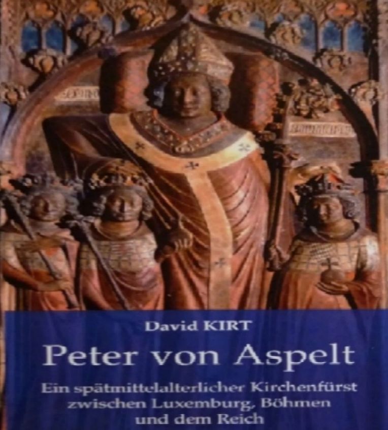 Ze verdanken hu mer dëst Wierk dem Här Dokter David Kirt. Baséieren deet dat neit Buch „Peter von Aspelt. Ein spätmittelalterlicher Kirchenfürst zwischen Luxemburg, Böhmen und dem Reich“ op dem Här David Kirt senger Dokteraarbecht, déi fir d’Verëffentlechung speziell ugepasst an duerch Zesummenaarbecht mat dem Éditeur, dem Här Jean-Claude Müller, nach ausgebaut ginn ass.