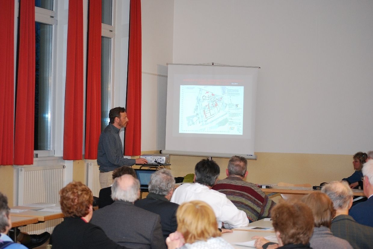 Ganz zum Schluss bemerkte der Redner dass, um eine endgültige Stabilisierung zu garantieren, unbedingt auch eine Heizungsinstallation, neue Fenster und eine instand gesetzte Fassade vorgesehen werden muss.