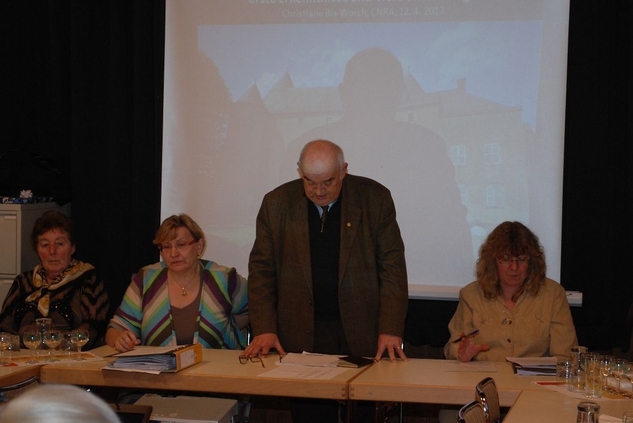 Sekretärin Claudine Winkel ging in ihrem Bericht auf die verschiedenen Aktivitäten des Jahres 2012 ein. Sie wies ebenfalls auf den Erfolg der, in Zusammenarbeit mit den “Geschichtsfreunden der Gemeinde Frisingen” herausgebrachten Publikation “Die Gruft beim Friedhof in Aspelt” hin, und stellte die neuen “Flyer” der ADCA vor, die in französischer und deutscher Sprache gedruckt wurden und bereits für alle Anwesenden vorlagen. Ebenfalls sprach sie die Feierlichkeiten “1050 Jahre Aspelt” an, welche am 15. Und 16. Juni dieses Jahres stattfinden werden, und bestätigte die Beteiligung der “Freunde des Aspelter Schlosses”.