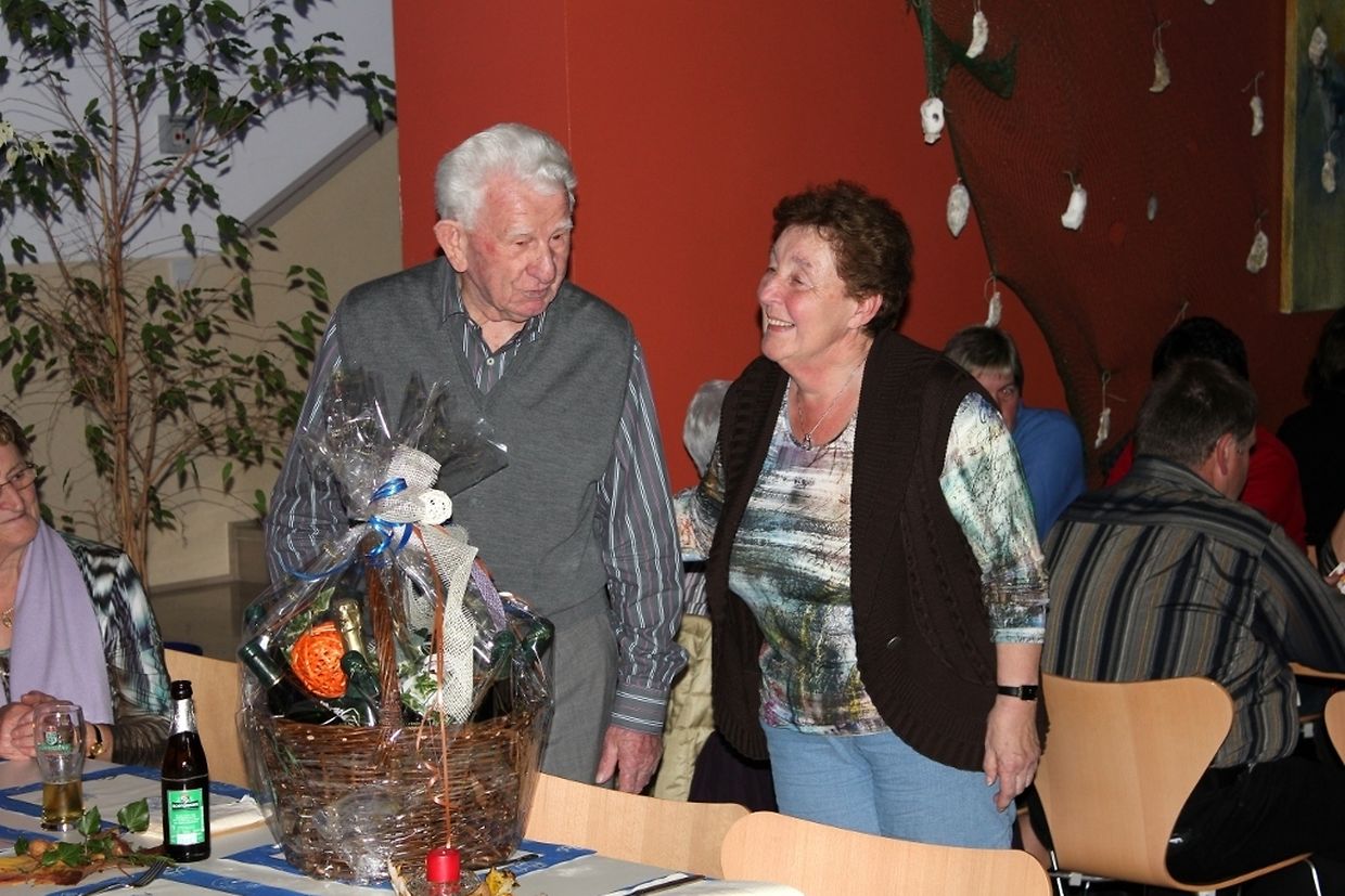 Bei dieser Gelegenheit, und vor gut besetztem Saal, ehrte der Chor durch ein passendes Präsent Herrn Paul Raus, der sein Amt aus Altersgründen im Vorstand des Vereines in der vergangenen Generalversammlung zur Verfügung gestellt hatte. Paul Raus, so hob Präsident Aloyse Schiltz hervor, war stets eine Stütze des Vereins. Und Vorstandsmitglied war er, seit der Chor einen Vorstand hat. Wir wünschem dem rüstigen Kollegen noch viele Jahre freudigen und lebensfrohen Zusammenseins im Kreise seiner Bekannten und Familie.