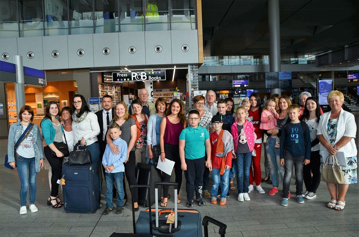 Am 15.07.2017 empfing die Hilfsorganisation "Hoffnung fir d'Kanner vun d'Tschernobyl asbl" am Flughafen Luxemburg insgesamt 15 Kinder und Jugendliche aus der Region Slavgorod/Weissrussland für einen einmonatigen Sommerurlaub bei luxemburgischen Gastfamilien. Vize-Präsidentin Jeanne Hilgert-Schmit begrüsste die Kinder sowie die vereinseigene Interpretin Alina Halinskaya, welche als Siebenjährige bereits selbst nach Luxemburg kam und somit fliessend luxemburgisch und russisch spricht.