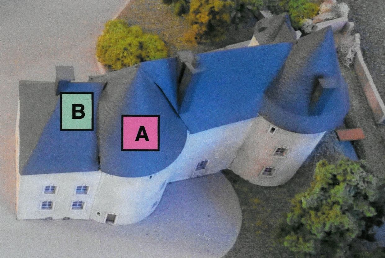 Auf dem Modell des Schlosses wird glasklar was passieren würde, sowohl nach der ersten als auch nach der zweiten Gemeindevariante, wenn man sich ein vom Dach aus – entsprechend der Fläche A oder der Fläche B - ins Innere der ’Eingeweide’ des Schlosses hinein getriebenes, alles auf seinem Weg durchdringendes quadratisches Rohr vorstellt. Würden Sie, die Leser, sich dies in ihrem Eigenheim vorstellen können, und glauben Sie im Ernst die Gemeindeväter würden dies in ihrem privaten Eigentum hinnehmen? Also soll dem laufenden Schauermärchen so oder so ein Ende gemacht werden!