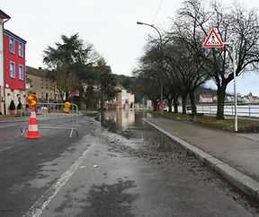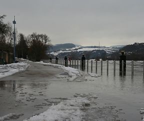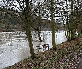 Heichwaasser zu Wasserbelleg: Vue vun der daitscher Säit