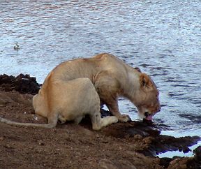 Trinkende Löwin in der Serengeti