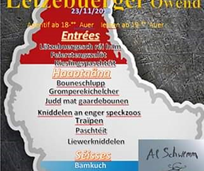 Chrëscht Basar mat 2 Menü'en + Kannermenü"- 14:00: "De Klimperhari"