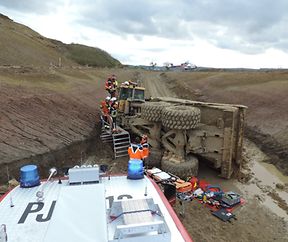 Spektakulärer Vorfall auf Baustelle: LKW kippt um