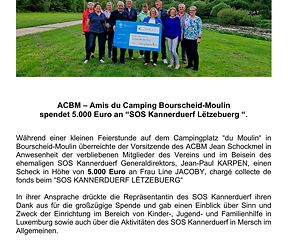 ACBM Amis du Camping Bourscheid-Moulin / Don 5000€ SOS Kannerduerf, Mersch