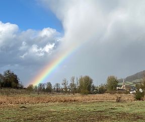 Den Ouschterhues bei de Lorblummen am Kiischpelt