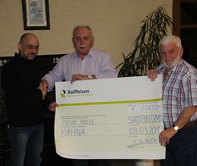 Scheckiwwerreechung vu der Amicale Briedemesser Pompjeeën un Rahna
