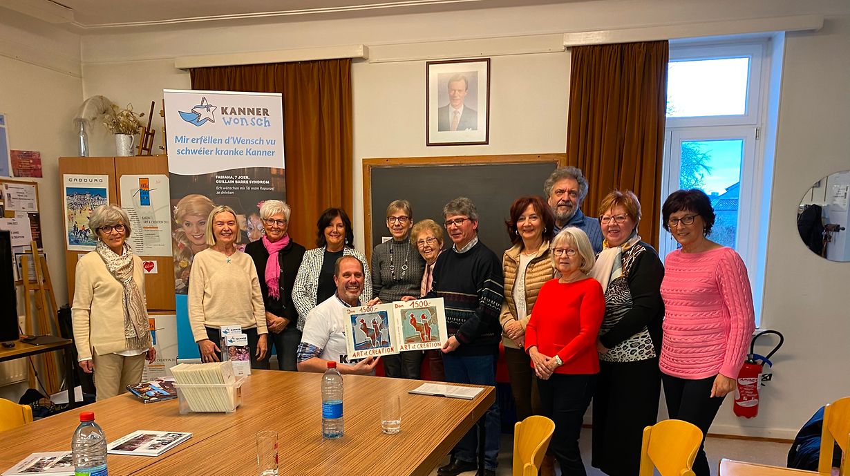 An hirem Atelier zu Elleng, sinn Kënschtler vun Art et Création zesummekomm fir hir traditionnell Scheckiwerrechung. Schon 20 Joer ginn all Joer vun September bis Dezember Chrëschtkarten a kleng Biller gemolt fir se dann zu Munneref um Chreschtmaart ze verkafen.