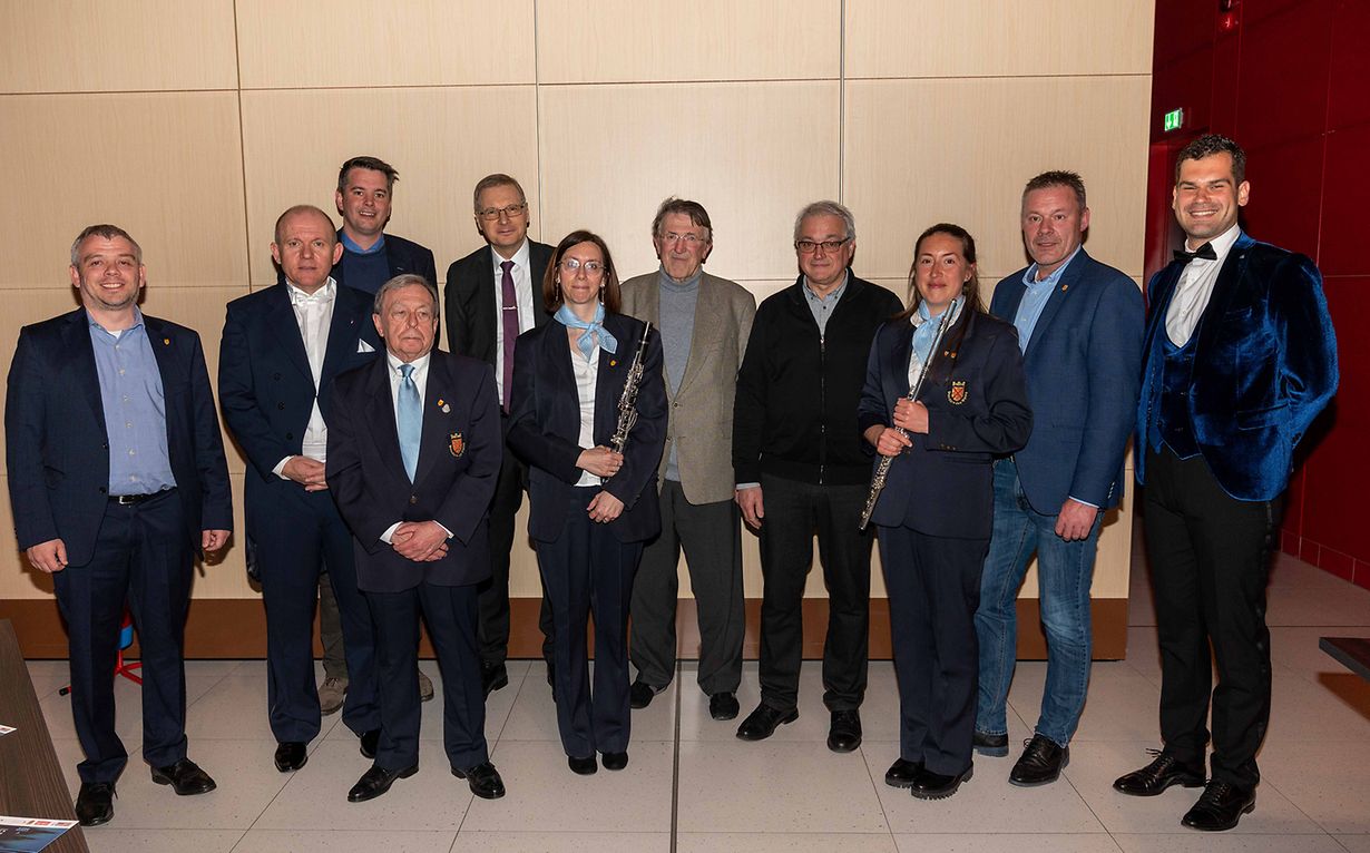 2020 sollte eigentlich die 30-jährige Aktivität von Olivier Gravier gefeiert werden. Nun, zwei Jahre später, wurde er kürzlich während des Frühlingkonzertes gebührend geehrt. In seiner humorvollen Laudatio unterstrich Präsident Claude Klemmer die musikalischen und menschlichen Qualitäten von Olivier. Er betonte, dass es der große Verdienst von Olivier sei, aus einer kleinen Fanfare ein eindrucksvolles Harmonieorchester geformt zu haben, welches zu den besten hier im Lande zählt. All seine Verdienste um den Verein, sowie die Ehrung an diesem Abend, werden dokumentiert im Jubiläumsbuch, welches 2023 publiziert wird.