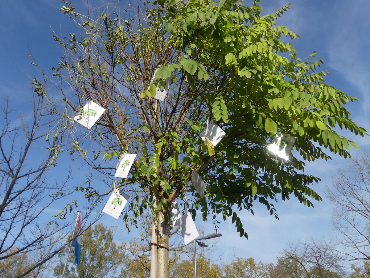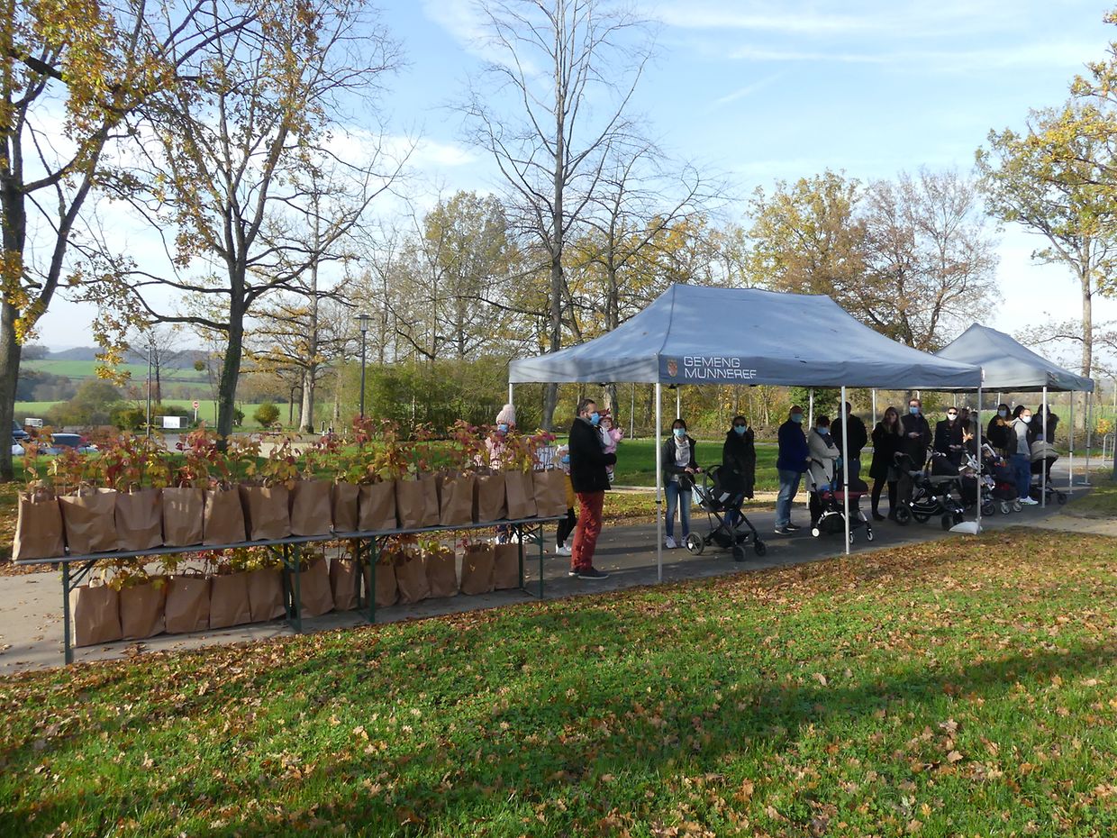 Bei schéinstem Wieder konnten d'Elteren sech e Bam eraus sichen a symbolesch eng Käertchen mam Numm vun hirem Kand un hire Bam hänken. All Famill krut och eng Planz mat fir doheem ze planzen