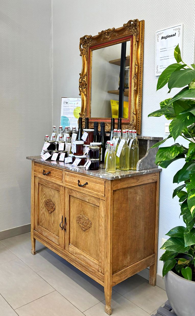 „D’VITRIN“ ist weit mehr als ein gewöhnlicher Secondhandland. Der Laden vereint mehrere sozial und ökologisch ausgerichtete Ansätze: die Produkte der „Bitzstuff“ mit ihren kreativen Upcycling-Projekten, „Regionales“ mit selbstgemachten Marmeladen und Sirupen – sowie den stilvoll eingerichteten Secondhandbereich mit ausgewählten Einzelstücken. Ein Ort, an dem Nachhaltigkeit, Handwerk und Solidarität miteinander verschmelzen.