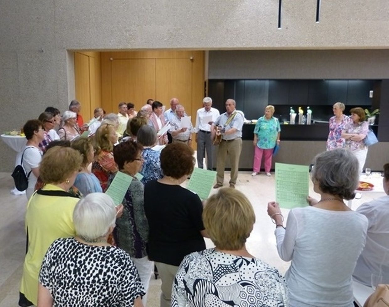 Kirzlech hat déi Munnerefer Gemeng, zesummen mat de Chorales réunies AEM, d'Eier de Gesangveräin vu Bad Homburg ze empfänken. De Schäfferot huet de léiwe Besuch begréisst. Et stoung eng Visite vum Bierger- a Kulturhaus um Programm. Am Nomëtteg wor e ganz flotten Austausch mat de Gesangveräiner. Bei Gesang an engem gudde Patt as den Dag leider ze séier zu Enn gang.