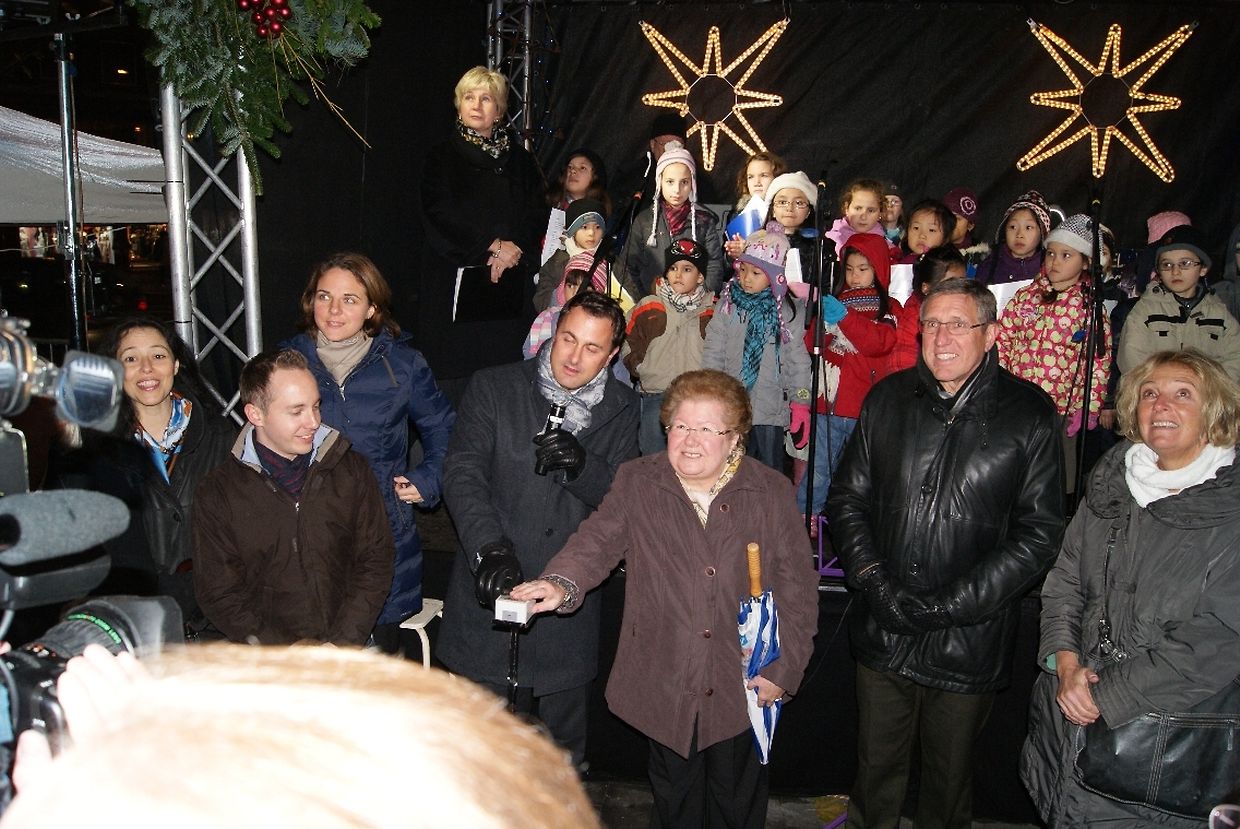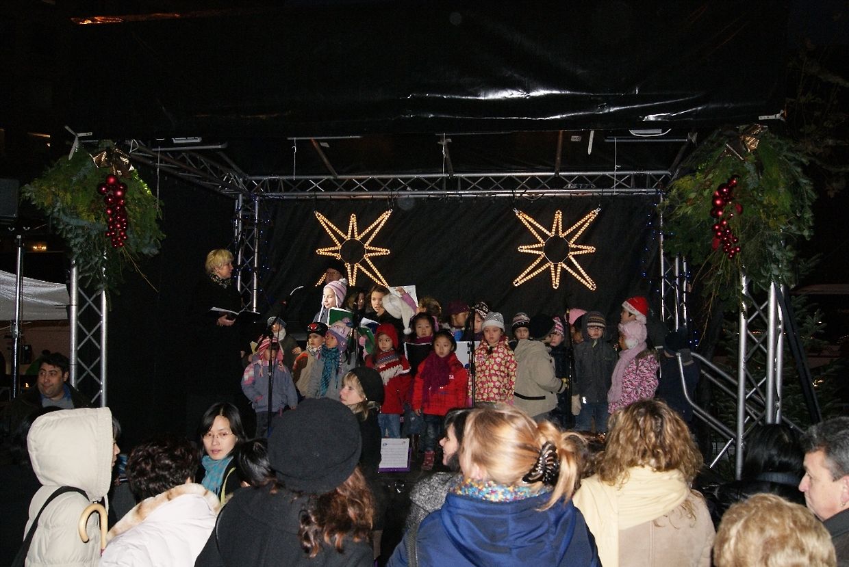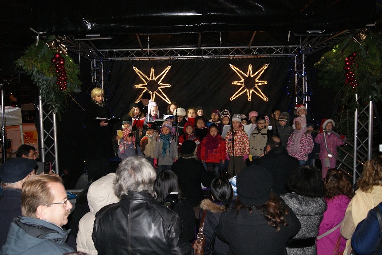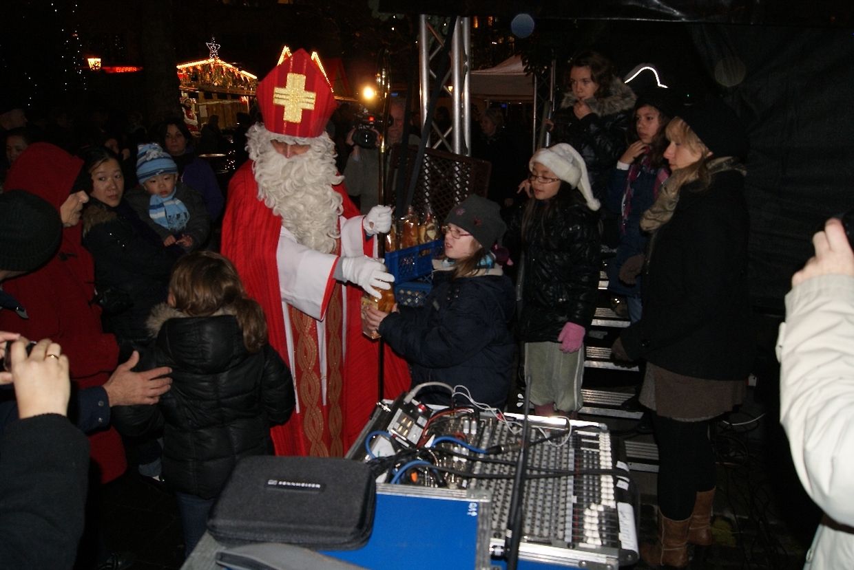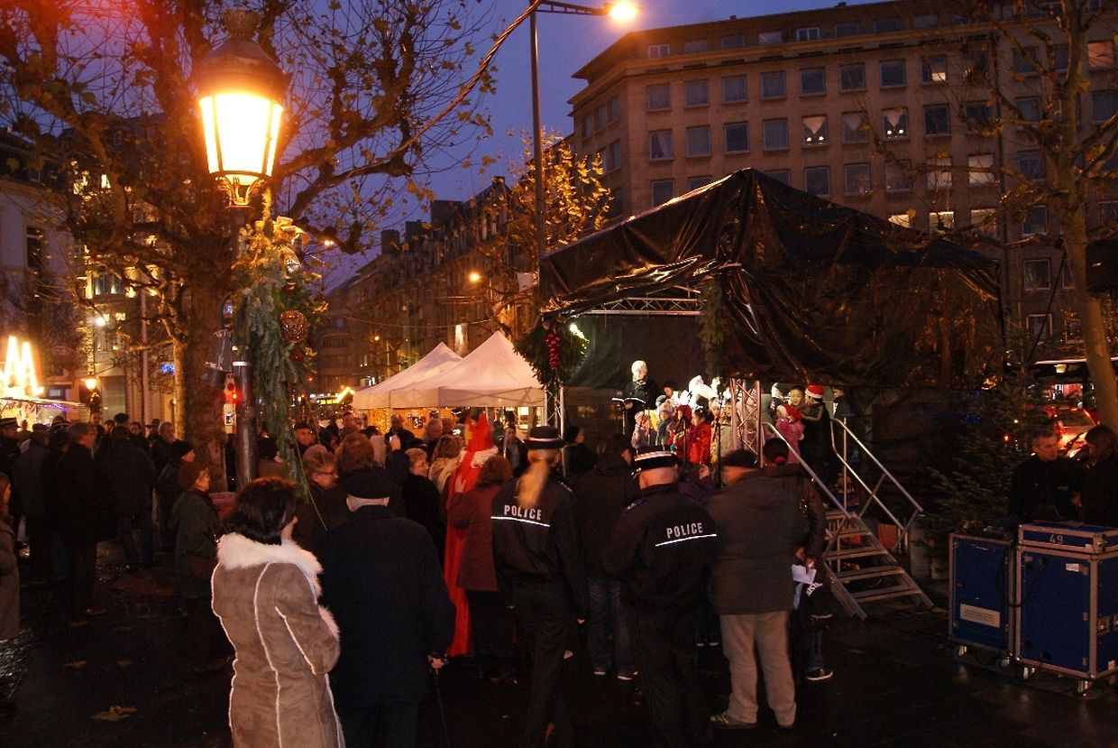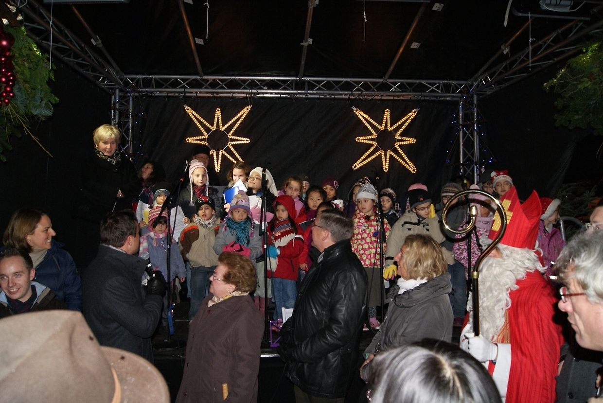 Kuerz no 17.00 Auer huet de Xavier Bettel neie Buergermeeschter vun der Stad Lëtzbuerg den Niklosmaart op der Präiserplaz offizell opgemaacht. Bouneweger Nuechtigailercher hunn mat flotten Lidder fir Chrëschtstëmmung gesuergt. Dofir guffen sie vum Kleeschen no hierem Concert mat enger eng Tut belount.
