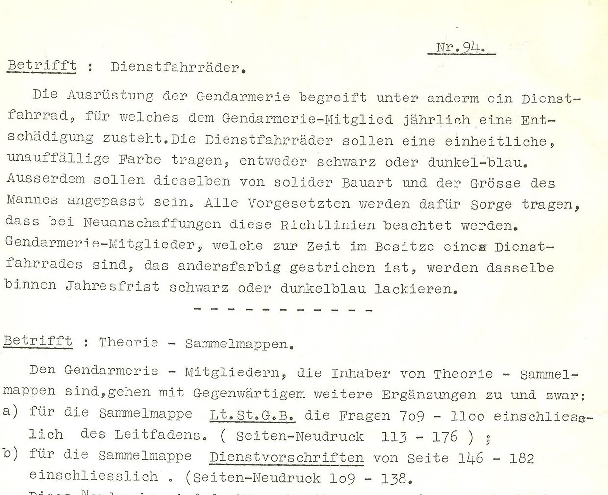 Stabile Bauart und von dunkler Farbe sollten die Drahtesel sein, dies wurde dann auch bei den alljährlichen Inspektionen durch den Dienstherrn überprüft.