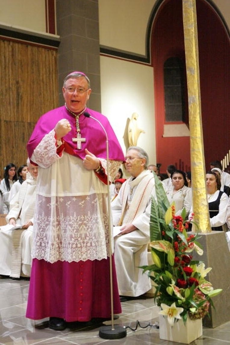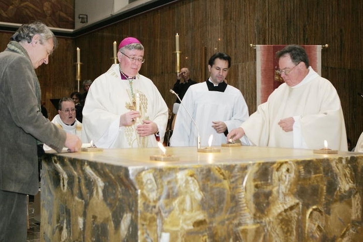 „Wir alle haben die große Chance in Luxemburg, in einer multikulturellen Gesellschaft leben zu dürfen“, betonte Jean-Claude Hollerich eingangs seiner Predigt. Alle – ob Luxemburger oder Nicht-Luxemburger, Jung oder Alt – würden wir uns dieselben Fragen stellen, verspürten wir dieselben Gefühle der Angst oder Freude. Im reichsten Land der Welt würden wir allerdings Flüchtlinge wie Kriminelle behandeln, dies sei beschämend. „Haben wir vergessen, dass für Jesus alle Menschen gleich waren?“, fragte der Erzbischof die Versammelten. Die Gläubigen und die luxemburgische Kirche sollten diese feierliche Altarweihe als Anlass für einen Neuanfang nehmen, so das Kirchenoberhaupt. Denn nur Menschen, die ihr Hab und Gut mit anderen teilen würden, könnten wirklich glücklich werden, meinte Erzbischof Jean-Claude Hollerich. Alsdann begann mit der Allerheiligenlitanei die Weihezeremonie des Altars. Erzbischof Hollerich besprengte den Altar mit Weihwasser, salbte ihn mit Chrisamöl und anschließend wurden fünf Weihrauchdochte, als Symbol für die fünf Wundmale Christi, mit dem Feuer der Osterkerze entzündet. Im Anschluss an die feierliche Altarweihe konzelebrierte Erzbischof Hollerich den Gottesdienst.