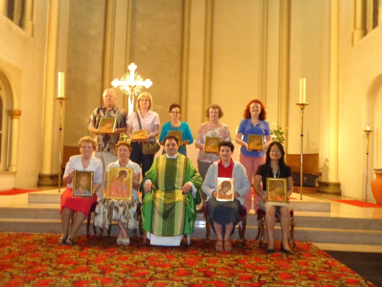 Cette année une nouvelle fois, la quatrième édition 2013 du cours d’iconographie organisé par les Missionnaires de l’Immaculée de Kolbe s’est tenu du 10 au 17 juillet à Hollerich (Luxembourg Ville) Don Gianluca Busi, Prêtre au diocèse de Bologne et Maître iconographe a été fidèle au rendez-vous est venu enrichi de son art avec son deuxième livre intitulé « Visible, Invisible-Icônes contemporaines » écrites en Italie qu’il a offert à Monseigneur Jean-Claude Hollerich lors d’une audience privée.