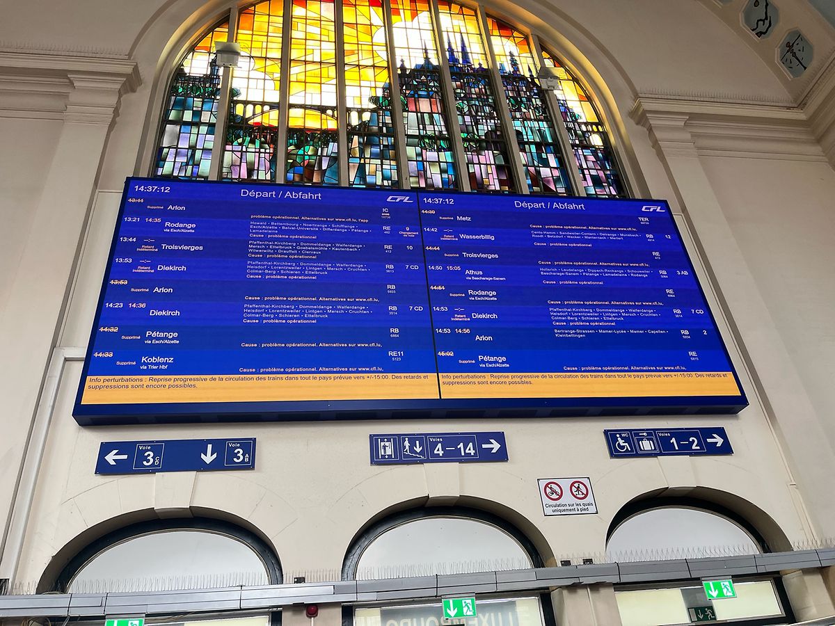 Luxemburg - Bahnhof Op der Stater Gare Pol Sassel 2 Bildergalerie Bitte scrollen Sie nach unten,um weitere Bilder zu sehen. Veröffentlicht am Freitag, 27. Juni 2025 um 06:23 Gare Luxemburg Während der Totalpanne auf dem CFL-Schienennetz im Luxembuerger Bahnhof am 25.6.2025. Unpassenden Inhalt angeben Weitere Neuigkeiten von Pol Sassel > Dezemberhambieren 04.12.25 Winseler Meng Grëmmeleschter Foto- Impressiounen am Dezember 2025 04.12.25 Winseler Mam Border Collie iwert de Flouer am Dezember 04.12.25 Doncols Die Biwischer Baumkrippe (Ulflingen) 04.12.25 Biwisch Om Wee van Tratten op Houffelt 02.12.25 Wintger