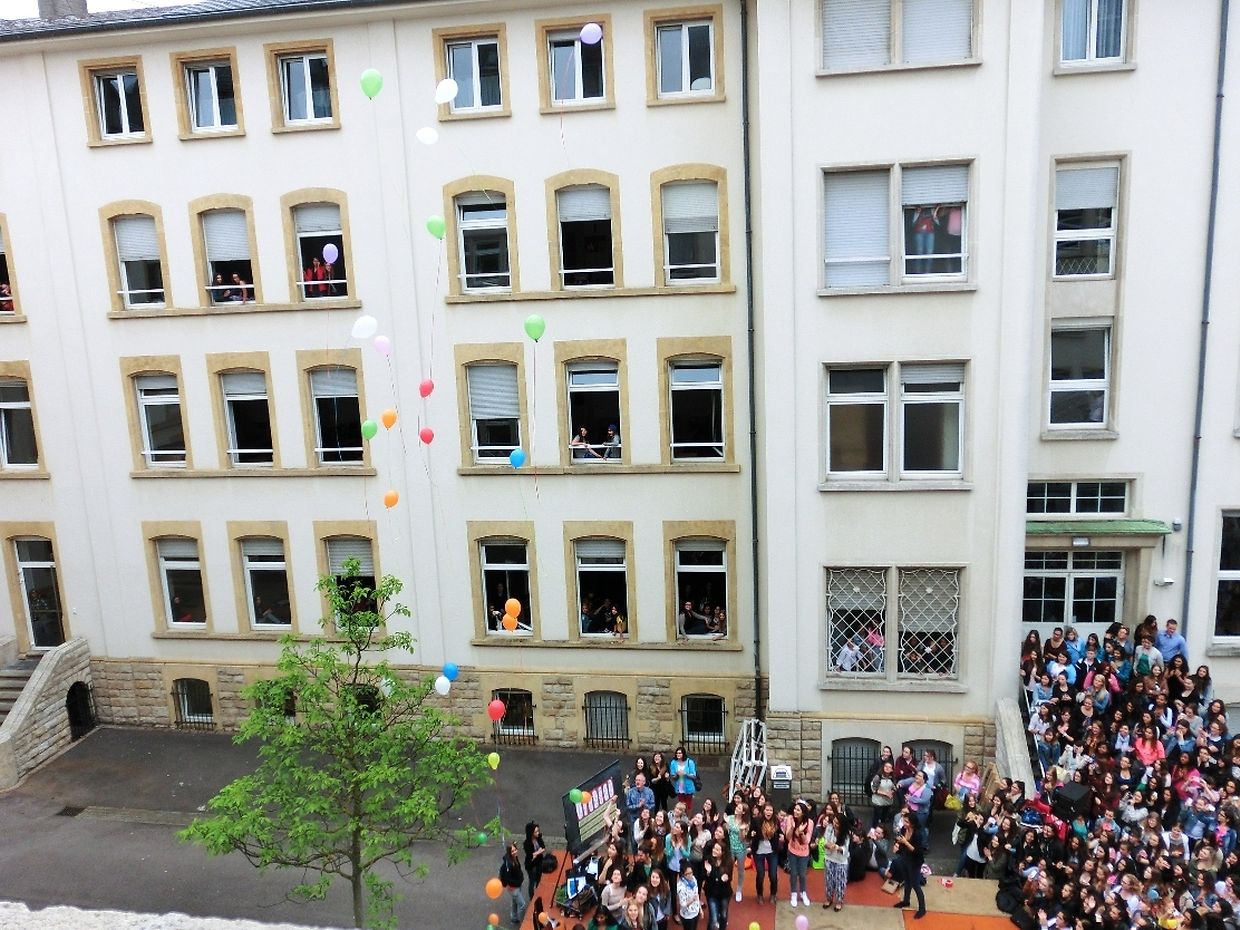 Am Freitag, dem 5. Juli 2013, fand ein kleines, von den diesjährigen Abschlussschülerinnen organisiertes, Schulfest im Pausenhof der Mädchenschule „Ecole Privée Fieldgen“ statt. Die Premières-und 13ièmes-Schülerinnen wollten gemeinsam mit den restlichen 1500 Schülerinnen, die noch einen mehr oder weniger langen Weg vor sich haben, ihren Abschied feiern. Dennoch flossen keine Tränen, denn dieser Abschied bedeutet alles andere als ein Ende: Es ist ein Neubeginn, ein Start ins Universitäts- oder Berufsleben. Symbolisch dafür schickte jede der anwesenden Schülerinnen zum Schluss der Feier ihren persönlichen Luftballon in die weite Ferne des Himmels: Gemeinsame Wege trennen sich von jetzt an, können sich trotzdem noch weiterhin hier und da kreuzen. Wie die bunten Ballons steuern alle eine andere Richtung an, hoffentlich der Sonne, also glücklichen Tagen zu, obwohl auch sicherlich ab und zu ein Gewitter zu überstehen ist.