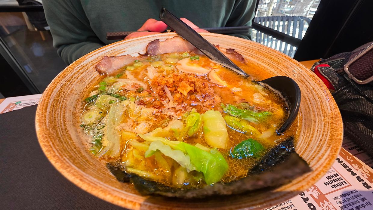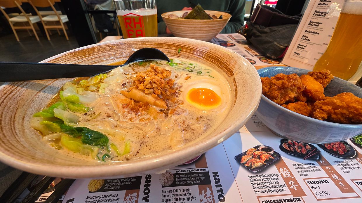 Première cuillère de bouillon, et on comprend que la cuisine de Kaito va au-delà de l’apparence. Le bouillon miso est riche, onctueux, parfaitement dosé, avec ce bel équilibre entre le salé et l’umami. Les nouilles, légèrement fermes, apportent de la mâche sans se gorger de liquide. L'œuf mariné (ajitama) est une merveille : cuisson parfaite, jaune coulant, saveur subtile. Le chashu — cette tranche de porc braisé — fond littéralement en bouche, avec ce goût fumé légèrement caramélisé qui fait toute la différence.