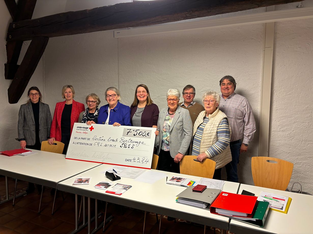 D‘Sektioun Bartreng vun der Croix-Rouge hat de 4. März hier alljärlech Generalversammlung. D’Presidentin Janine Reuland-Schneider huet d’Madame Buergermeeschter Monique Smit-Thijs, esou ewéi d’Vertrieder vun der Gemeng,d’Madame Catherine Gapenne, d’Madame Yanica Reichel an den Här Oberhausen-Krippler vun der Croix-Rouge all d’Quêteusen an Sympathisante vun der Sektioun begréisst .No enger Gedenkminutt fir déi verstuerwe Membere vun der Sektioun huet d’Presidentin e Reckbleck op e gutt gefëllten d’Joer 2023 gemaach an si ass op de Programm vun dësem Joer agaangen. De Programm vum Joer 2023 huet d’Manette Wapach-Lommel am détail virgedroen , dorënner waren ënner anerem Präsenze bei der Grousser Botz , dem Multi-Kulti, der Ovatioun fir di nei Buergermeeschtesch den Nationalfeierdag an d’Journée de la Commération nationale an dem Wantermaart vun der Gemeng .Och e Floumaart ass den Abrëll dobausse bei den Hunnen an den November am Centre Atert organiséiert ginn. Duerno huet d‘ Simone Kremer-Schonckert de Keesebericht presentéiert. Well d’Kees ganz gesond ass konnt e Scheck vun 7500 Euro un d’Madame Yanica Reichel vum Service IRIS vun der Croix-Rouge iwwerreecht ginn.D’Madame Reichel huet duerno de Service IRIS virgestallt. Heibäi handelt et sech em Bénévoler di sech em einsam Persounen këmmeren.Eng Quêteuse d’Janette Lucas-Etienne ass geeiert gin fir 10 Joer. D’Manette Wampach-Lommel huet mat engem Bouquet Merci gesot kritt fir seng Aarbecht wärend 30 Joer. D’Monique Smit-Thijs huet der Sektioun nach mat ville léiwe Wieder felicitéiert fir hiert Engagement an duerno ass bei engem klenge Maufel an engem Patt dësen Owend op en Enn gaangen