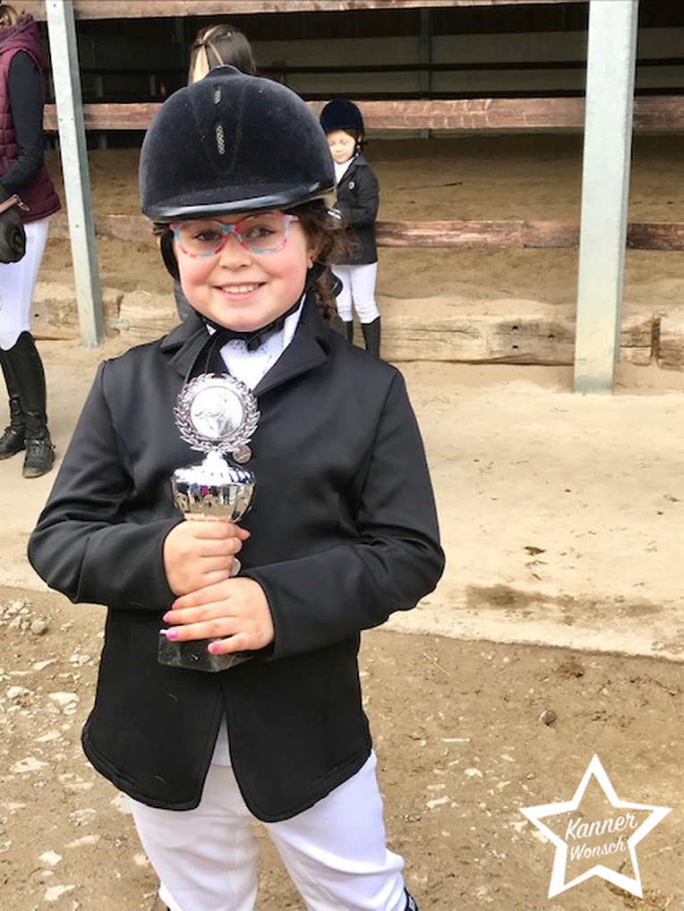 Dimanche dernier, Zoé a remporté une compétition d’équitation. Elle montait un poney nommé Tom car Bella ne se sentait pas très en forme. Elle a pu ainsi, grâce à Kanner Wonsch, trouvé la force de combattre la maladie. Elle a décidé que la maladie ne l’empêcherait pas d’accomplir de grandes choses et encore une fois, elle sait qu’elle peut compter sur son amie Bella, tout son entourage et les bénévoles Kanner Wonsch qui étaient présents lors de sa compétition. C’est avec le sourire et emplie de joie et de fierté que Zoé a remporté cette compétition.