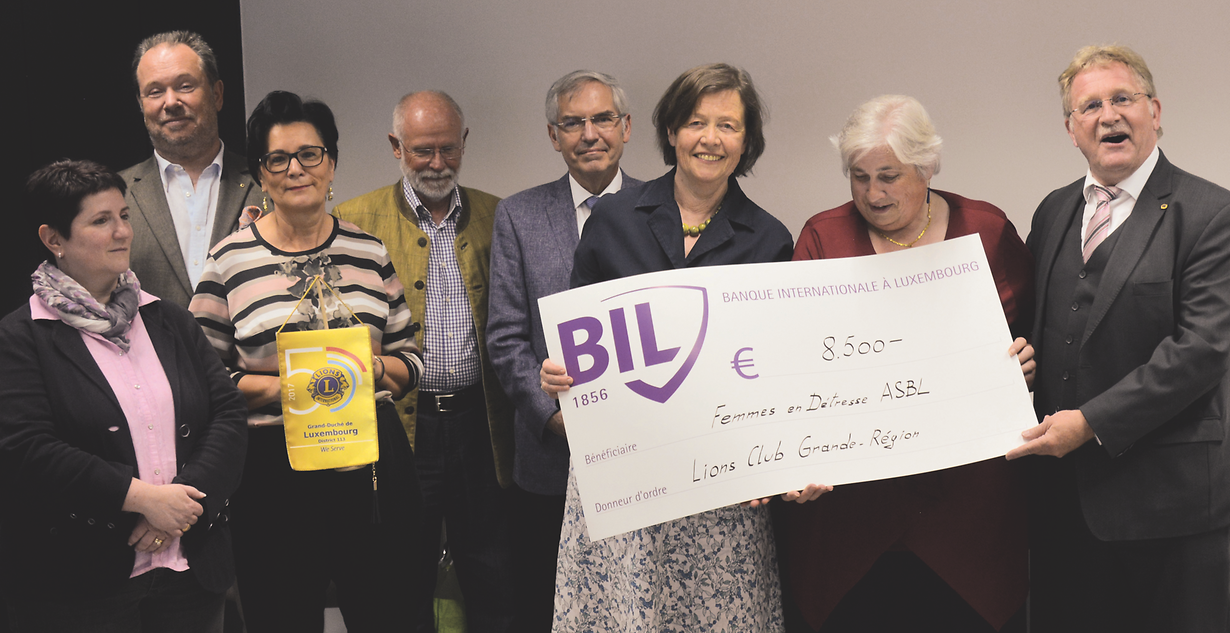 Mit großer Freude konnten die Mitglieder des Lions Clubs Grande Region einen Spendenscheck in Höhe von 8.500 € an „Femmes en Détresse ASBL“ überreichen.