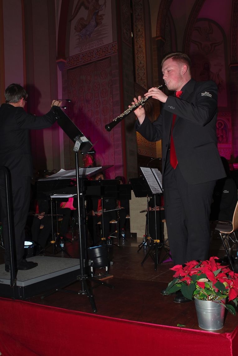 Dat éischt Stéck vun der BBM, déi feierlech Rees mam „Glacier Express“ gouf nach vum Patrick Hengen dirigéiert, ier hien offiziell den Dirigentestaf u säin Nofolger, den Daniel Heuschen iwwerreecht huet. D’Musikante ware gefuerdert mat wonnerschéinen, awer usprochsvolle Melodien a Stécker wéi „God’s Country“, „The Eight Candle“ oder „Forrest Gump“. Natierlech duerften awer och Chrëschtlidder wéi „A Christmas Festival“ net feelen. Fangerspëtzegefill war am Stéck „Gabriel’s Oboe“ gefrot, wou de jonken talentéierten Jean Fusshoeller musikalesch mam Hautbois iwwerzeegt an d’Publikum bal zum Schmelze bruecht huet.