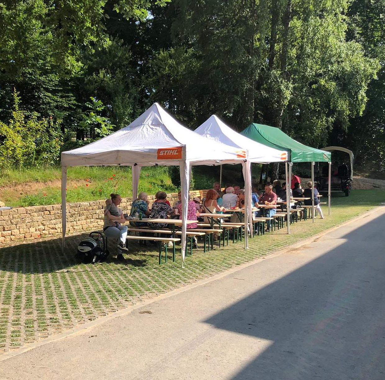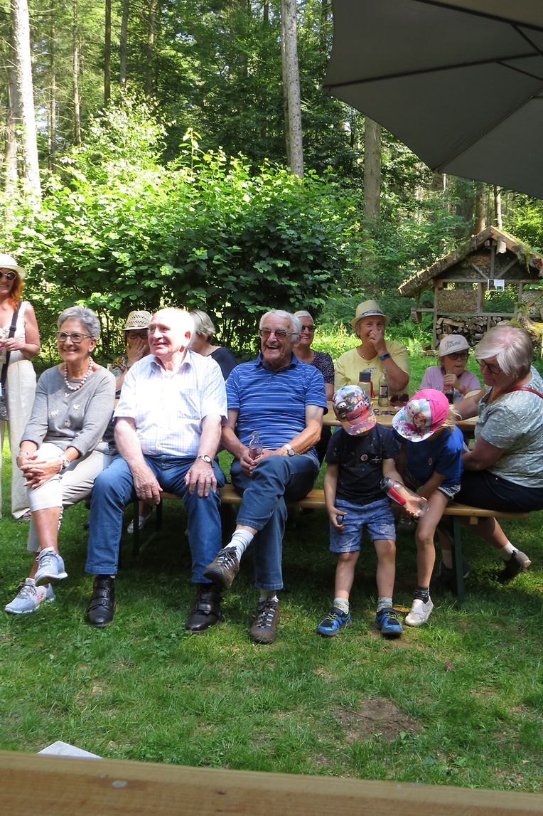 Nach der Rückkehr zum Forsthaus, wurde der Grill auf dem Vorplatz, vor der kürzlich im Kader des europäischen Interreg Projektes errichteten Trockenmauer, angezündet. In geselliger Runde ließ man die Seele baumeln und kehrte gegen Abend, mit der Kraft, welche man im Marscherwald getankt hatte, zurück nach Hause. (FSa)
