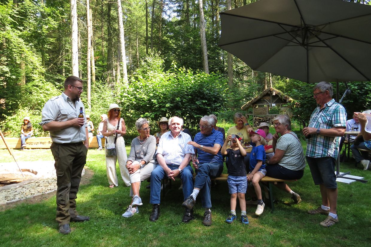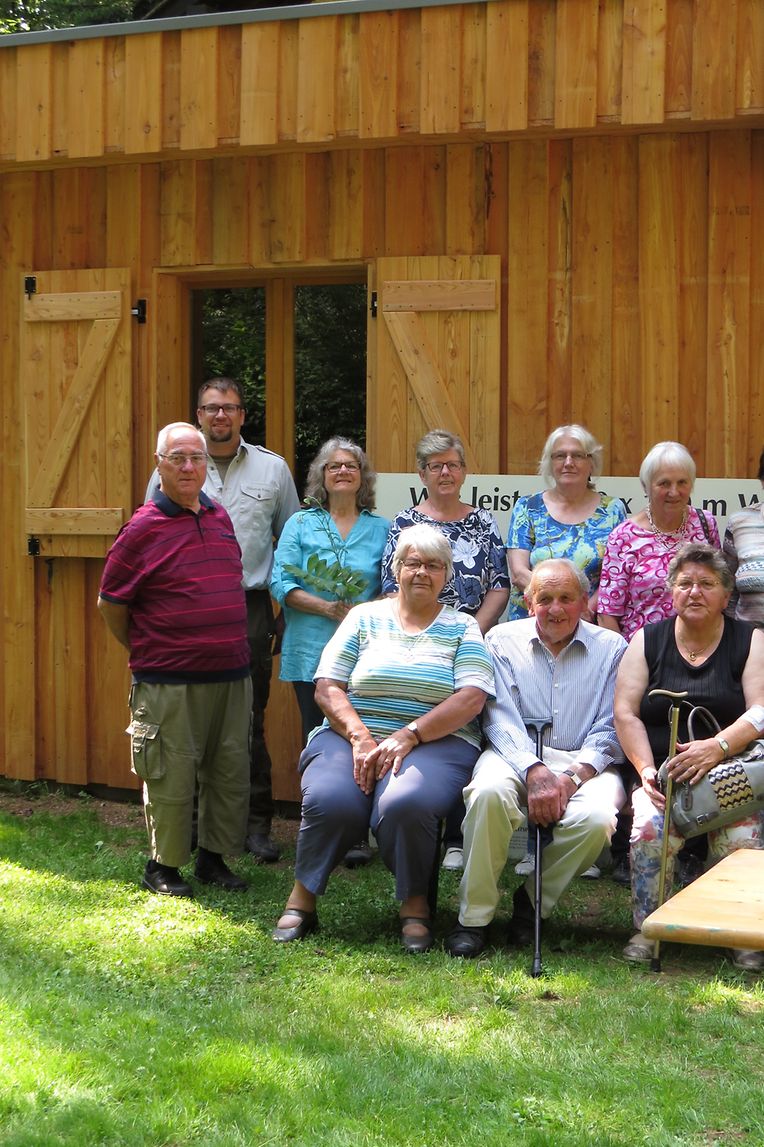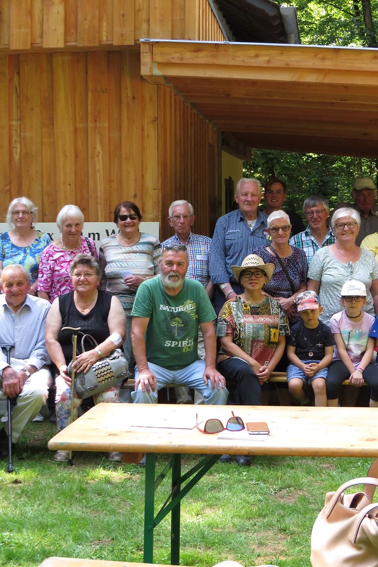 Unter Anleitung des neuen Försters der Gemeinde Consdorf, Joe Mensen, bestiegen die Senioren dann den Leiterwagen, welcher von Pferden gezogen, Sie nach einer Rundfahrt durch den Marscherwald zum pädagogischen Naturhaus brachte, wo eine Erfrischung angeboten wurde. Während der Fahrt durch die Forsten überraschte der Förster die Teilnehmer mit den Douglasien, welche der damalige Förster Bohnenberger, auf den vom Staat angekauften Ländereien des früheren „ Paschetterhaff „, vor mehr als 100 Jahren hier angepflanzt hatte. Er hatte den Douglasien Samen importiert und die jungen Pflanzen erfolgreich anwachsen lassen. Heute kann man nun hier mit die stärksten Douglasien Bäume des Landes mit einem Durchmesser von 120 cm und einer Höhe von 48 m bestaunen.