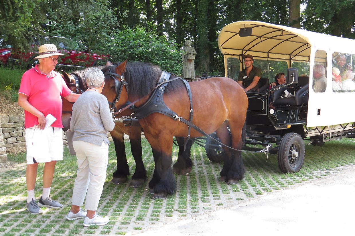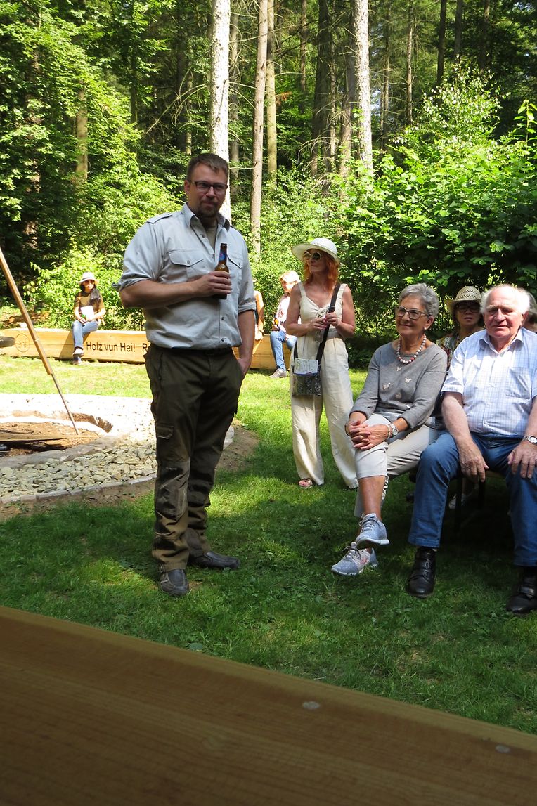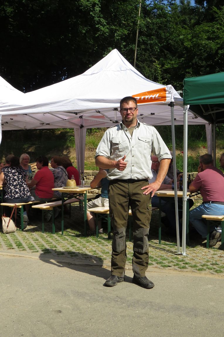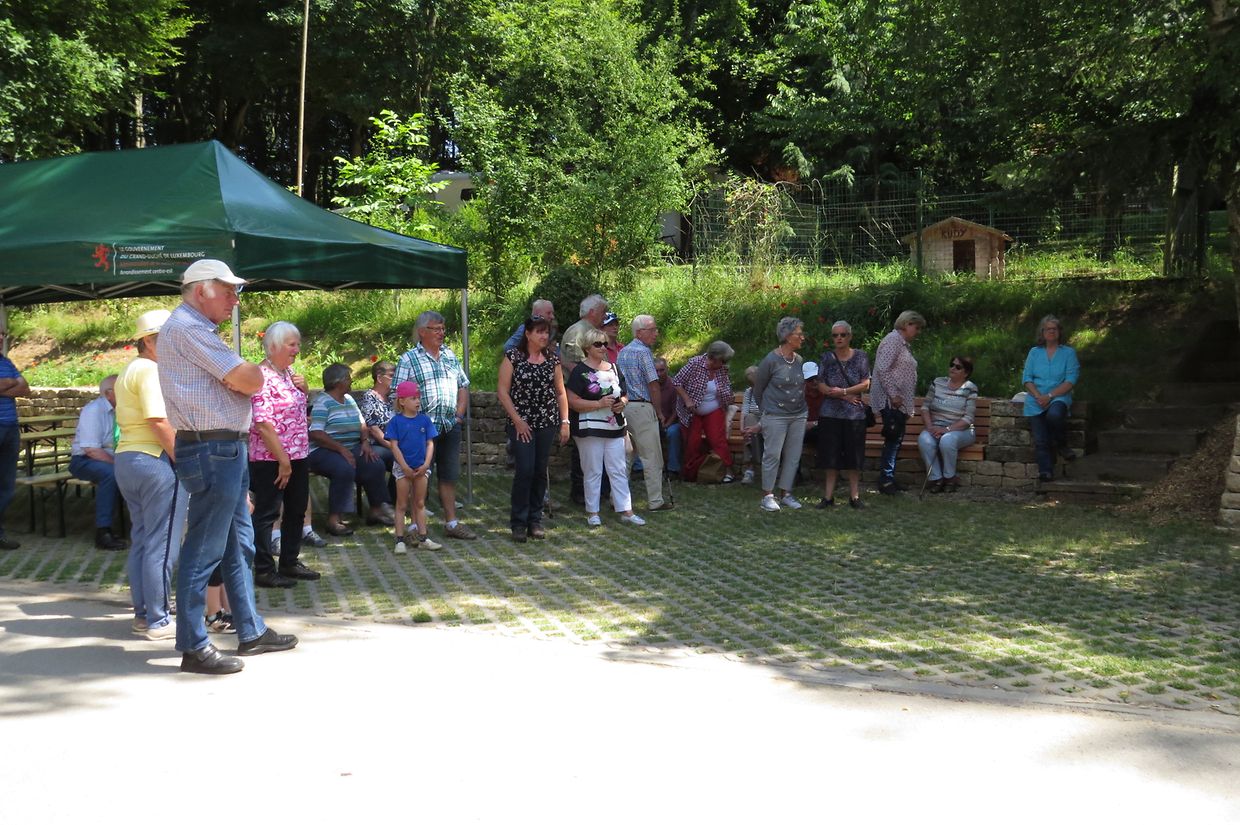 Unter Anleitung des neuen Försters der Gemeinde Consdorf, Joe Mensen, bestiegen die Senioren dann den Leiterwagen, welcher von Pferden gezogen, Sie nach einer Rundfahrt durch den Marscherwald zum pädagogischen Naturhaus brachte, wo eine Erfrischung angeboten wurde. Während der Fahrt durch die Forsten überraschte der Förster die Teilnehmer mit den Douglasien, welche der damalige Förster Bohnenberger, auf den vom Staat angekauften Ländereien des früheren „ Paschetterhaff „, vor mehr als 100 Jahren hier angepflanzt hatte. Er hatte den Douglasien Samen importiert und die jungen Pflanzen erfolgreich anwachsen lassen. Heute kann man nun hier mit die stärksten Douglasien Bäume des Landes mit einem Durchmesser von 120 cm und einer Höhe von 48 m bestaunen.