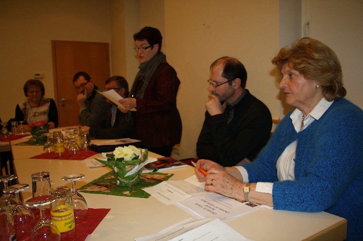 Alle Jahre wieder . . . . . treffen sich die Gesangvereine der Pfarreien Bech und Hemstal zu ihrer statutarischen Generalversammlung. Beide Vereine sind unabhängig in ihrer Vereinsorganisation, gesanglich jedoch vereint mit den Sängern aus Biwer zu ihren Gesangsauftritten. Heuer hatten sich die Mitglieder wieder zahlreich zur diesjährigen GV im Vereinssaal in Hemstal eingefunden, wo alle von der Präsidentin des Gesangverein Hemstal Thessy Hau-Thomé begrüsst wurden. Sie zeigte sich angetan von der Anwesenheit von Pfarrer Hw. Carlo Morbach, seine Pfarrassistentin Frau Josiane Mirkes hatte sich in diesem Jahr entschuldigen lassen. Herzlich begrüßt wurde ebenfalls der neue Bürgermeister der Gemeinde Bech, Hr. Camille Kohn mit seinen Schöffen- und Gemeinderat. Den Tätigkeitsberichten von Carlo Frisch (für den Gesangverein Hemstal) und von René Post (für den Gesangverein Bech) entnehmen wir die Teilnahme bei mehr als 100 Aktivitäten während des Jahres 2011, seien es die wöchentlichen Proben, abgehalten abwechselnd in Bech oder Hemstal, die Teilnahme bei kirchlichen und weltlichen Anlässen, sowie die Gestaltung der kirchlichen Begräbnisse in Bech, Hemstal und Biwer. Hervorheben möchten wir hier nur die Radiomesse, die Messe aus Anlass der Weinsegnung in Machtum, die Teilnahme an der Antonius Kirmes in Rippig, sowie die Gestaltung der Nikolausmesse in der restaurierten Kapelle von Zittig.