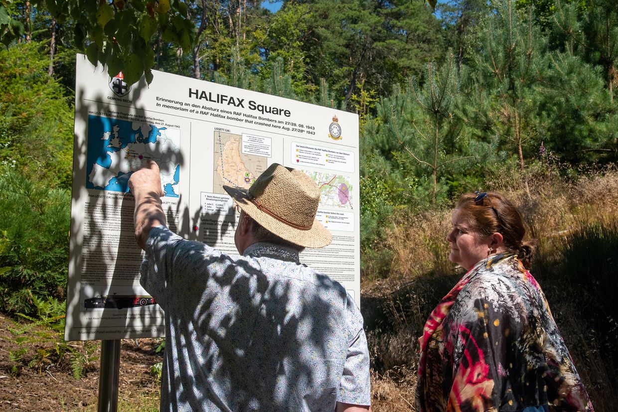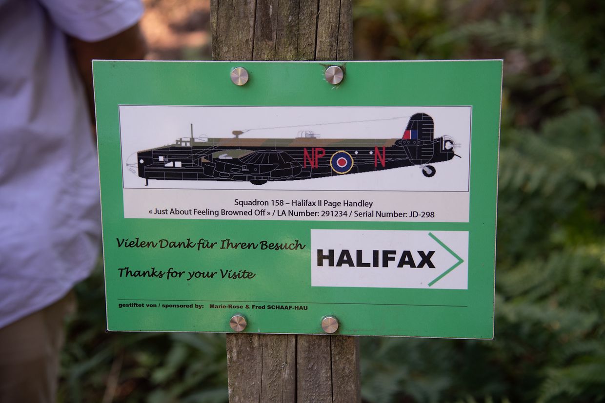 Nächst Jar, den 27. oder 28 August 2023 wëlle mer ons un den 80 Jaresdag, bei enger bescheidener Gedenkfeier op dëser Plaz erënneren, wie hei am Marscherwald den RAF Halifax Bomber wärend der Nuecht explodéiert ass. Dir sidd elo schonns all häerzlechst agelueden fir derbäi ze sinn.
