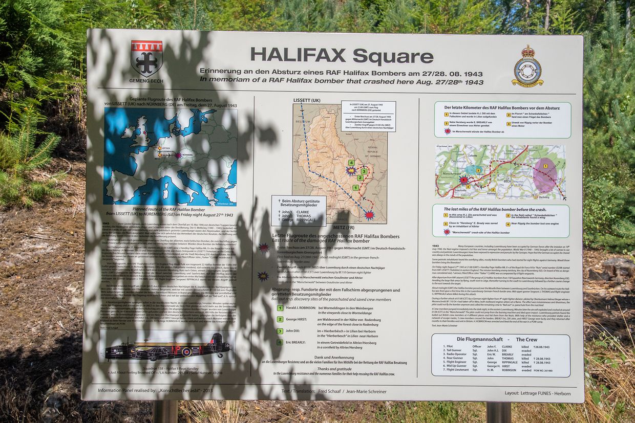 70 Jar waren bis 2012 vergaangen, ouni Erënnerung a Gedenken un dat wat an der Nuecht vum 27./28. August 1943 iwwer Lëtzebuerg an duerno am Marscherwald beim Crash vum Halifax Bomber passéiert war. Eng laang Zäit, déi op meng Initiativ en Enn fonnt huet. Hei ass eng Gedenkplaz geschaafe ginn, vill Aktiounen an Aktivitéiten waren wärend 10 Jar vun 2012 bis 2022 néideg fir Halifax-Plaz esou ze gestalten wéi se haut ass. Meng vill Recherchen sinn elo Basis fir sech weider un dat ze erënneren wat hei wärend dem II. Weltkrich geschitt war, an op d´Resistenz an op Familljen di gehollef hunn, an Dankbarkeet hinzeweisen.