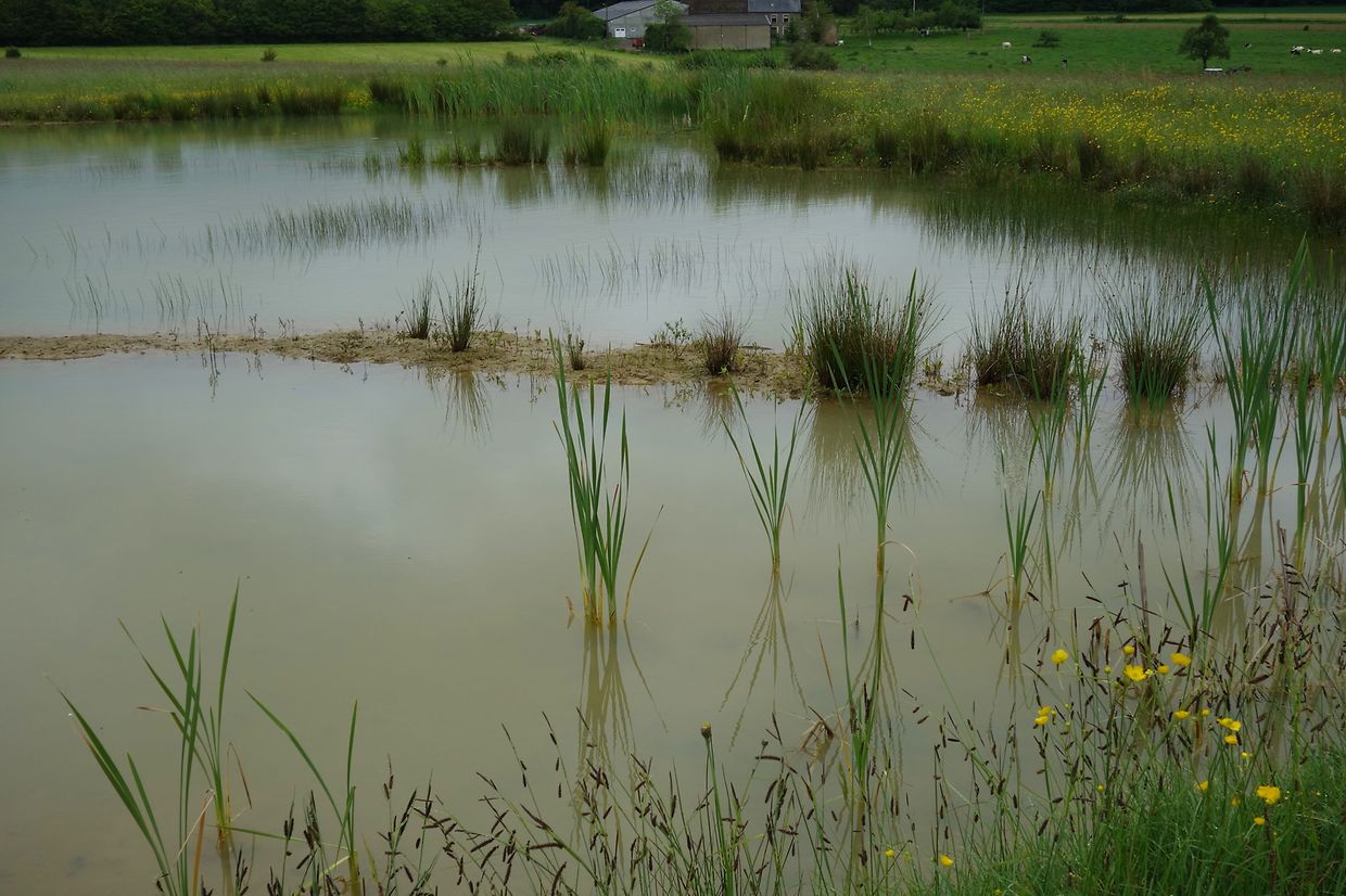 Zusätzlich hat SICONA zwischen 2012 und 2016 14 Stillgewässer auf dem Gelände angelegt und einen bereits vorhandenen Weiher gepflegt. Diese Gewässer beherbergen sieben verschiedene Amphibienarten, unter ihnen der Kammmolch, die gröβte und seltenste Molchart in Luxemburg, sowie den Bergmolch, Fadenmolch, Grasfrosch, die Erdkröte, und den Grünfrosch.