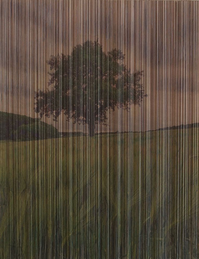 L’artiste cherche à développer la contemplation d’une autre façon et incite à un retour à l’intériorité de celui qui s’arrête devant le bas-relief. C’est une évocation de paysages peut-être déjà vus ou reconnus avec une notion en plus : ils apportent une dimension supplémentaire. Ce n’est pas une simple photo, c’est beaucoup plus ! Ce sont des œuvres immersives mais qui induisent aussi une interaction avec le spectateur, en permettant un aspect visuel différent selon son emplacement devant l’œuvre. La lumière captée par les rainures de la matière crée une vibration semblable à une légère brise.