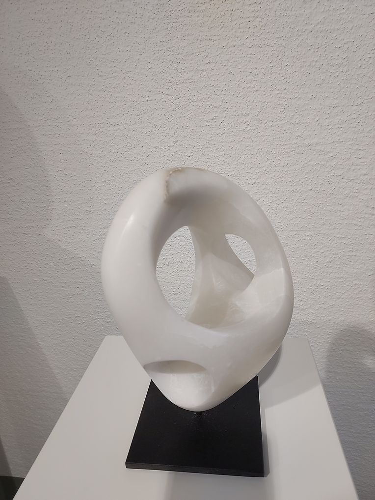 Le travail de la pierre est abordé avec aussi son flot d’exigences et de respect envers cette matière résistante, qui peut aussi se révéler fragile. Le toucher est différent, l’approche se manifeste plus étudiée. Matière inerte, présentant cependant des veines et des imperfections qui peuvent perturber le travail de l’artiste. La pierre brute a été créée par la loi de la nature et rappelle un état de virginité. La taille de celle-ci est une action, un mouvement, un engagement physique qui signifient un travail long, minutieux et précis. Il se révèle passionnant, car il demande une analyse et une réflexion constante sur la matière. Tout comme l’homme, au fil du travail la pierre évolue. Et la difficulté réside en le fait de pouvoir rendre l’élément parfait, sans pour autant le dénaturer. L’artiste doit comprendre la pierre pour en révéler sa beauté. L’observation de l’ombre et la lumière est un guide pour continuer le travail. Des temps de taille et des temps d’observation se succèdent dans cet art exigeant qui se doit d’être minutieux afin d’obtenir un rendu de précision et de qualité.