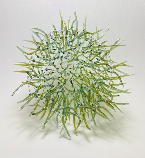 Anne Claude Jeitz a commencé par étudier le design pour apprendre à travailler les matières ; le bois, le métal, l’inox, l’acier, l’aluminium. Elle a finalement été attirée par le verre qui devient très vite son matériau de prédilection. Dans cette discipline, tout est envisageable et la recherche fait partie intégrante de cette forme d’art. Un maître verrier lui a dit un jour « Ce n’est pas toi qui choisis le verre, c’est lui qui te choisit. » L’artiste utilise avec une parfaite maîtrise les différentes techniques : que ce soit la technique du soufflage ou la technique du chalumeau ; filigrane, filage, structure organique, tout est mis en œuvre pour soutenir le message désiré. La technique du chalumeau innovante qu’elle utilise a été élaborée avec son compagnon de vie, Alain Calliste. C’est un maillage de fils entrecroisés formant un tissu modelable et extinguible. Sa production nous révèle des créations aux allures de dentelle, ainsi que des formes denses et solides, pour une expression forte dans l’immatérialité du souffle.