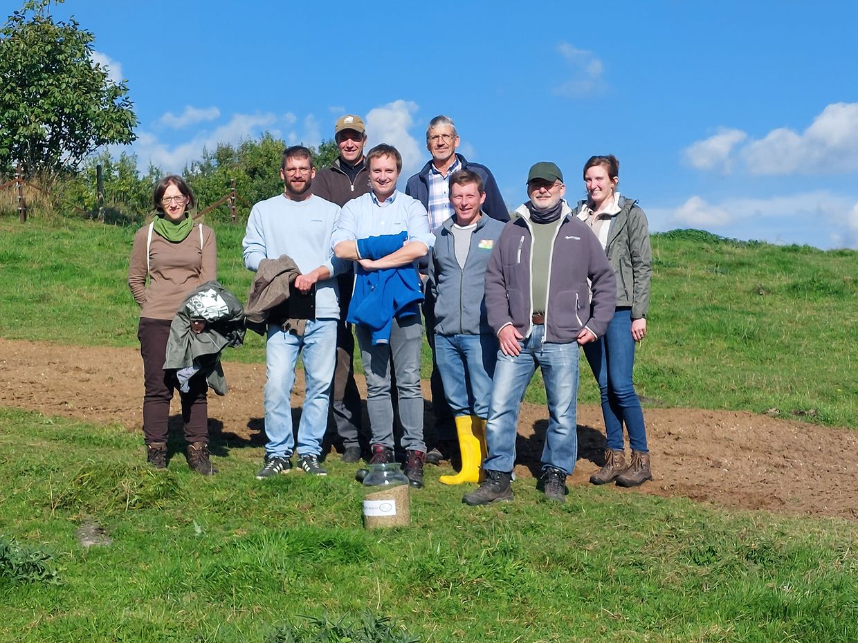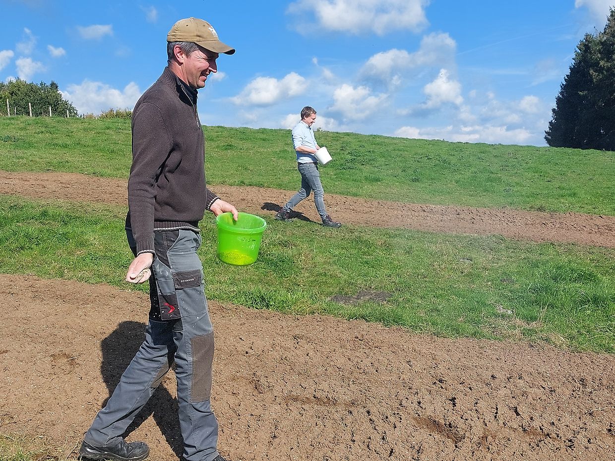 Dieser Wiesentyp war auch das Ziel der Renaturierungsmaßnahme des SICONA, die in der Flur „Bill“ in der Gemeinde Beckerich umgesetzt wurde. Auf etwa 2,5 Meter breiten Streifen wurde eine oberflächliche Bodenbearbeitung durchgeführt, um ideale Keimbedingungen zu schaffen. Anschließend wurden darauf Samen von typischen Wiesenkräutern und -gräsern ausgesät, die zuvor mit einem „Seedharvester“ auf einer artenreichen Wiese in der Gegend geerntet worden sind. Die so eingebrachten Zielarten können sich nach erfolgreicher Etablierung in den Streifen im Laufe der nächsten Jahre auf die restlichen Teile der Wiese ausbreiten. Die Fläche wird nach der Renaturierung weiterhin extensiv im Rahmen eines Vertragsnaturschutzprogrammes als Weide genutzt. Zur Erfolgskontrolle wird ein botanisches Monitoring durchgeführt.