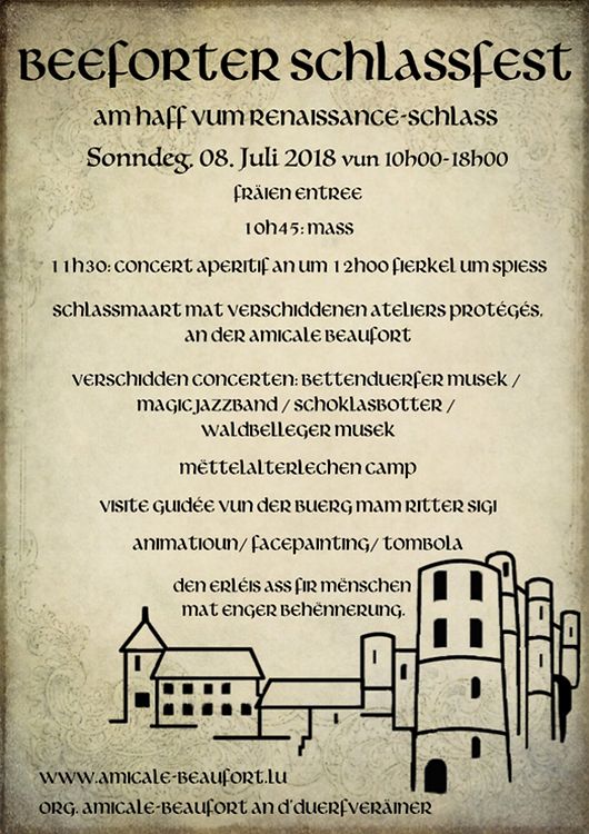 Schlossmarkt ab 10:00 Uhr mit u.a. Stands von einige "Ateliers Protégés" und der Amicale Beaufort