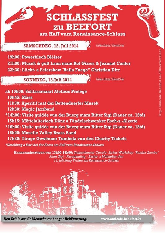 Schlossmarkt ab 10:00 Uhr mit Stands von einige "Ateliers Protéges", der Amicale Beaufort und eine Infostand vom ORT.