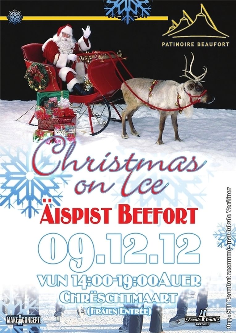 Christmas on Ice ist ein kleiner aber gemütlicher Weihnachtsmarkt auf der Beeforter Eispiste, Sonntag der 9. Dezember von 14:00 bis 19:00 Uhr. Auch der Weihnachtsmann wird wieder anwesend sein.... Diese Weihnachtsmarkt wird organisiert von der Syndicat d'Initiativ et du Tourisme Beaufort in zusammenarbeit mit: