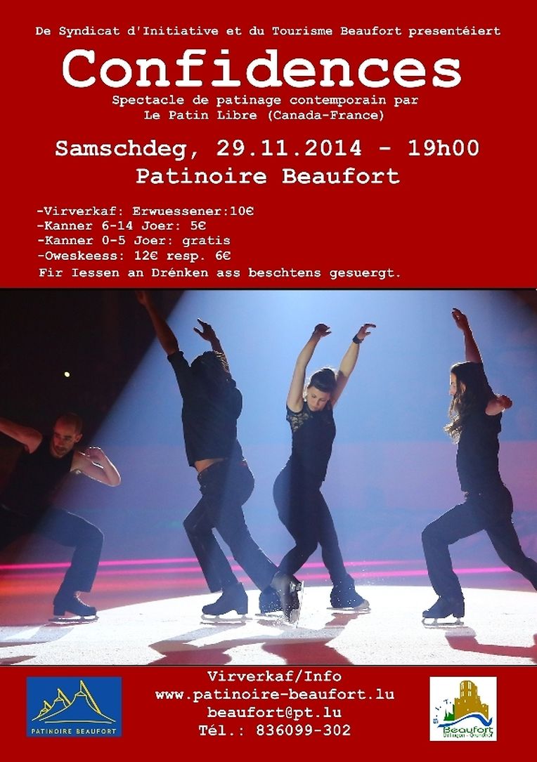 En Highlight dëst Joer ass e Samschdeg, 29.11.14 um 19h00, wann de kanadesche Grupp „Le Patin Libre“ säi „Spectacle de patinage contemporain - Confidences“ op der Beeforter Äispiste presentéiert.