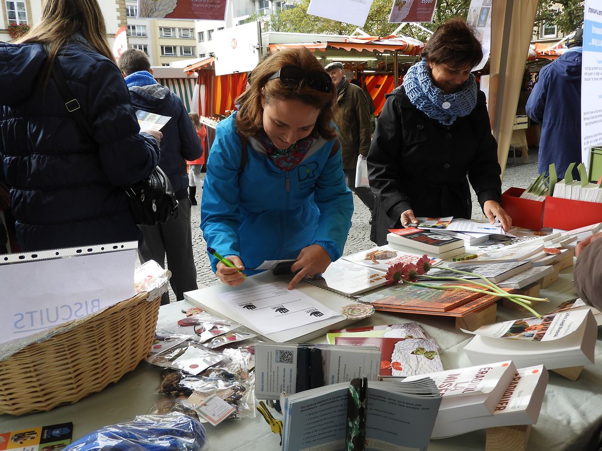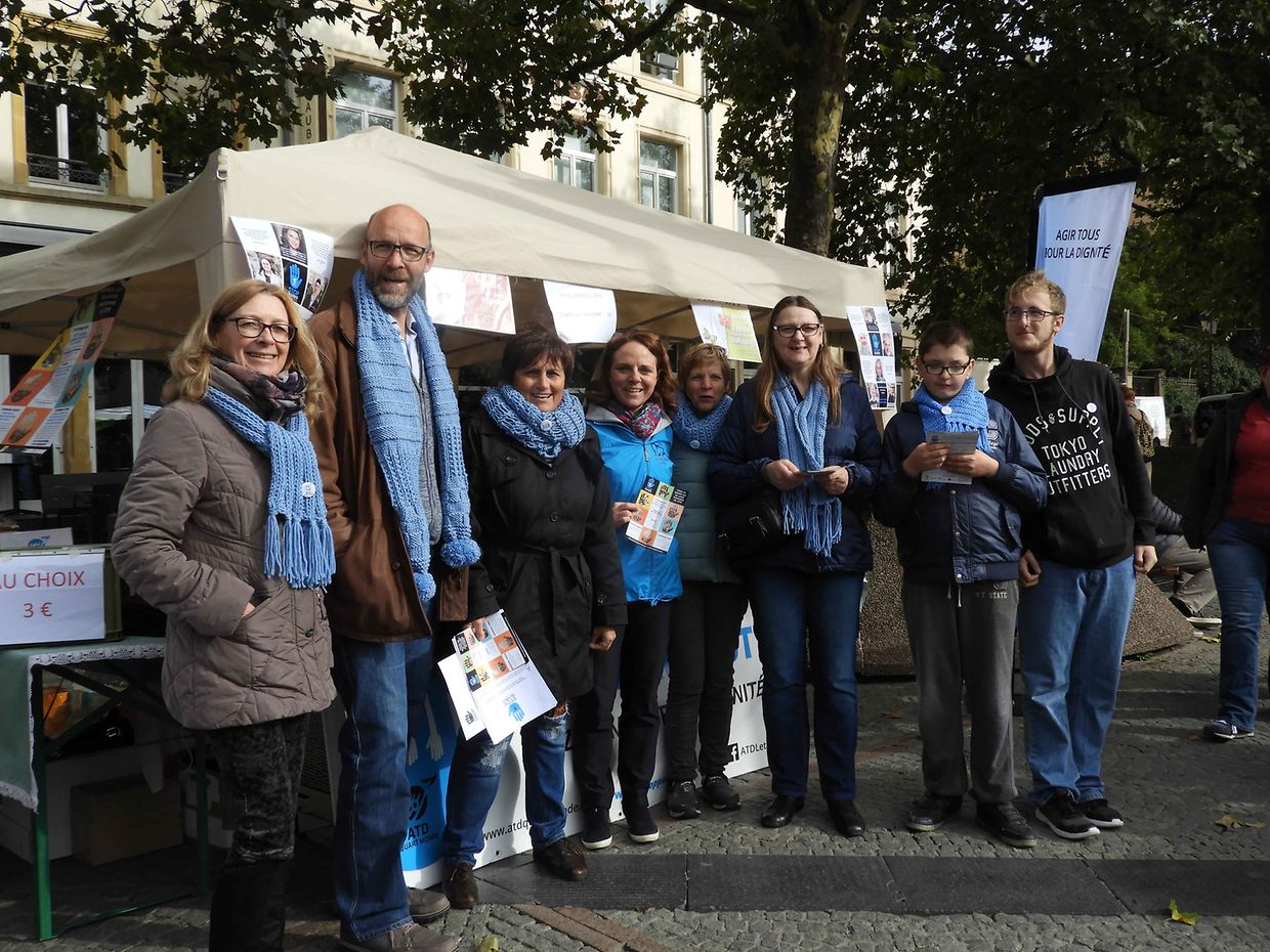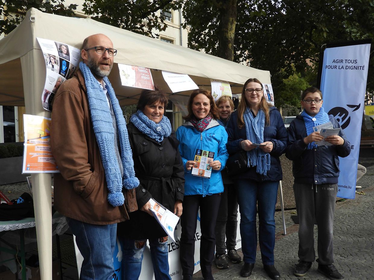 Letzten Samstag war ATD Quart Monde Luxembourg asbl mit einem Informationsstand auf dem Knuedler in Luxemburg-Stadt vertreten. Eine Gelegenheit, die weltweite Kampagne Stop pauvreté der Öffentlichkeit hier in Luxemburg bekannt zu machen. Diese Kampagne fordert sämtliche Bürger dazu auf, sich gemeinsam im Kampf gegen Armut, für die Menschenrechte und für den Frieden zu engagieren.